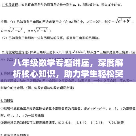 八年级数学专题讲座,深度解析核心知识,助力学生轻松突破学习难关