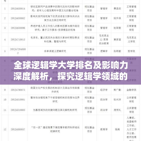 随着全球教育的不断发展,逻辑学作为哲学、计算机科学、心理学等多学科的基础,其重要性日益凸显,全球各大高校在逻辑学领域的实力与排名也备受关注,本文将探讨逻辑学大学的全球排名及其影响力。