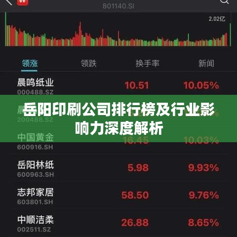 岳阳,这座美丽的湖南城市,不仅拥有悠久的历史文化底蕴,同时也是现代印刷业发展的重要基地之一,随着信息时代的到来,印刷行业在岳阳得到了快速发展,众多印刷公司如雨后春笋般涌现,本文将为您介绍岳阳印刷公司的排名及其行业影响力。